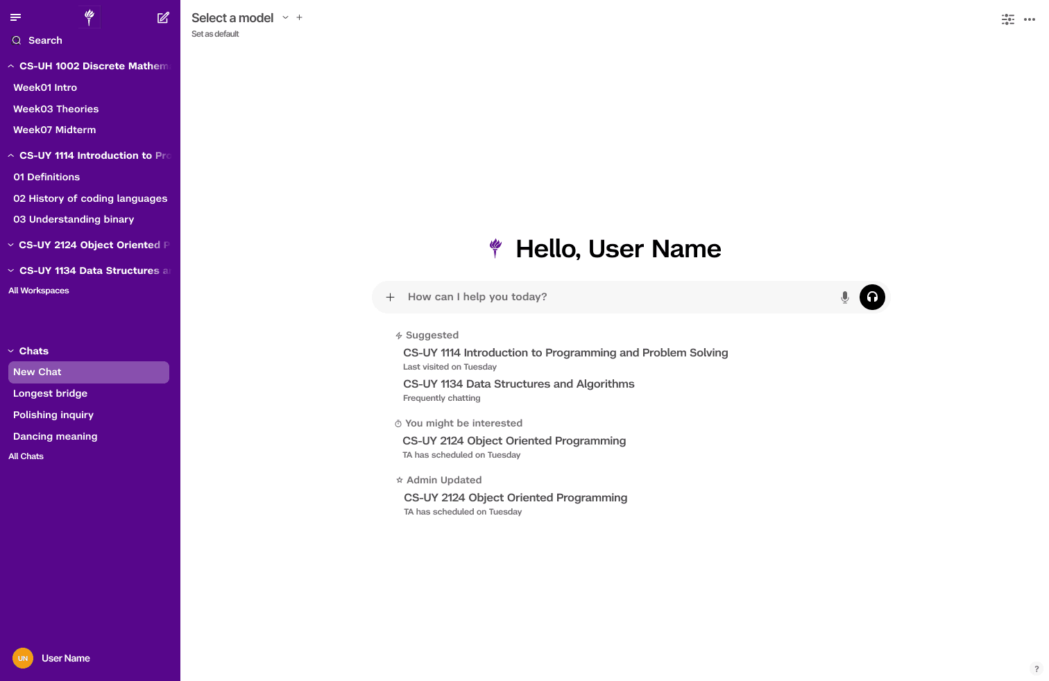 Platform Familiarity: Styled like a modern AI platform (similar to ChatGPT) but grounded in NYU’s academic brand.