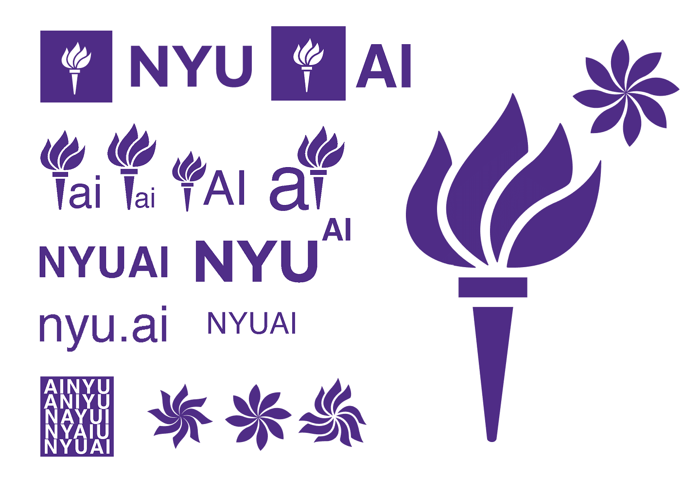 Logo: Designed a spiraling flower motif built from NYU’s iconic torch elements. It symbolizes growth, collaboration, and the expanding reach of AI in education.