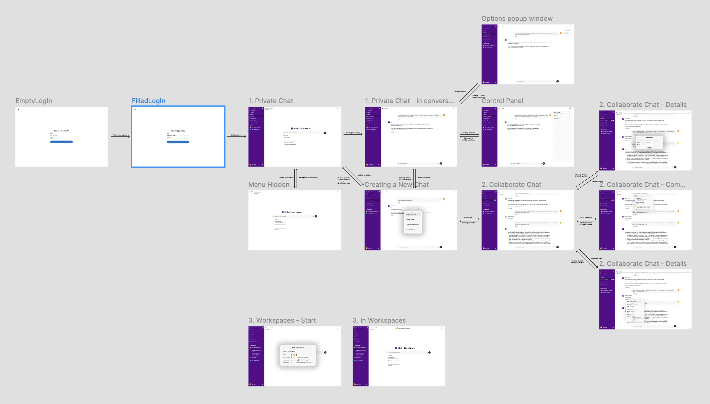 Implemented frontend prototypes for conversation flow and history visualization.
